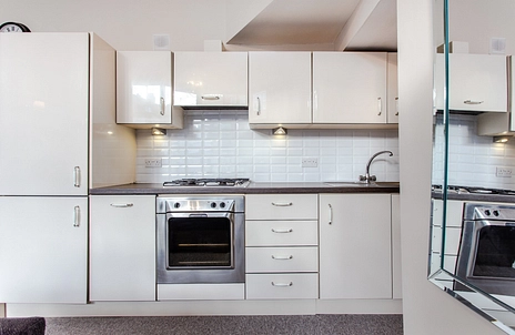The open plan living space is a good size, amplified by the double height ceiling and large double glazed windows that have been newly installed. It opens out to a small patio area. The kitchen provides a modern finish with integrated appliances. The main bedroom offers a large wardrobe space and the second bedroom is ideally suited as a guest room or study. PLEASE NOTE As the bedrooms are internal a ventilation system has been installed to ensure a natural flow of air. The shower room has a modern finish.