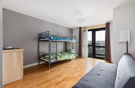 While the building itself, and the communal areas retain many original features, the apartment has a contemporary feel with laminate wood flooring throughout.
