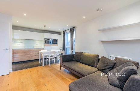 The property offers two double bedrooms, one of which includes an en-suite bathroom; a fully integrated, open-plan kitchen and reception room with space for dining; and a modern three-piece family bathroom with shower over bath. Added benefits include a private balcony with incredible views over the canal, gas central heating and floor to ceiling windows allowing plenty of natural light.