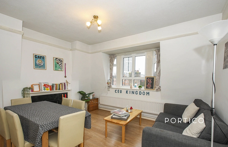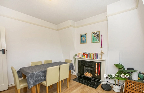 Step inside this immaculate two-bedroom apartment, an urban sanctuary that offers a sophisticated blend of period character and contemporary living. The property is beautifully grounded by original exposed wooden floorboards that sweep through the main living areas, leading you into the true heart of the home: a wonderfully bright and spacious reception room. Here, a striking decorative fireplace with a black tile surround creates an elegant focal point, while an expansive window floods the dining and seating areas with natural light. Adjoining the reception is a pristine, modern kitchen, thoughtfully designed with sleek white gloss cabinetry, classic subway tile splashbacks, and contrasting stone-effect countertops. It comes fully equipped with a stainless steel gas hob, built-in oven, washing machine, and a wall-mounted Bosch boiler, all set against a leafy window backdrop. The accommodation further comprises two generously proportioned double bedrooms, beautifully appointed with crisp neutral décor, large windows, and built-in wardrobe space to ensure a tranquil and uncluttered retreat.