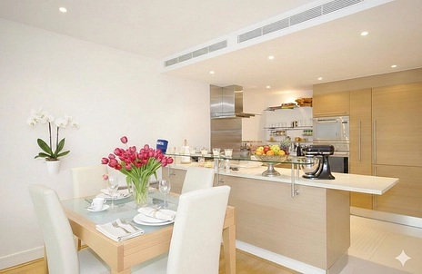 This sophisticated two-bedroom residence is situated within the prestigious Howard Building at Chelsea Bridge Wharf, offering a refined lifestyle for discerning tenants. The property centers around an expansive open-plan kitchen and reception room, designed for both effortless entertaining and quiet relaxation. This living space flows naturally onto a private terrace, which provides a serene vantage point over the beautifully landscaped piazza and its tranquil water gardens. The master suite serves as a true retreat, complete with a generous walk-in wardrobe and a private en-suite bathroom, while a well-appointed second bedroom is served by a separate, modern bathroom. Thoughtful additions such as integrated comfort cooling and substantial storage solutions ensure the apartment is as functional as it is elegant.