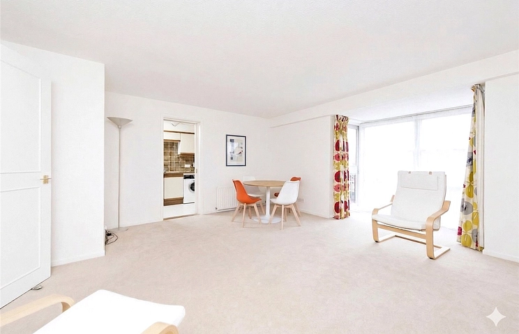 The heart of the home is a bright and expansive reception room, which opens directly onto a private balcony—an idyllic vantage point for watching the river. The separate kitchen is thoughtfully equipped with a full suite of appliances, including a dishwasher and washing machine. Both bedrooms are generous doubles, featuring extensive built-in wardrobes that offer excellent storage. While the interior retains its original character, the proportions are superb, complemented by a classic bathroom suite with overhead shower.