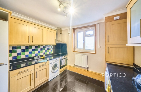 Positioned on the top floor with the convenience of lift access, this property offers two large doubles and a third smaller double room, excellent natural light, and a practical layout ideal for sharers, couples, or a growing family. The flat features three wellproportioned bedrooms, a modern kitchen, and a bright and spacious living area with space for dining. The bathroom has a bath with overhead shower and a separate toilet.